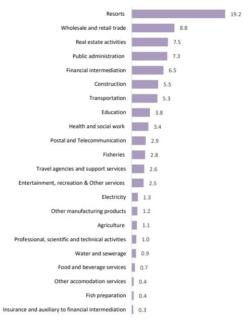 Tourism remains the backbone of the economy, consistently contributing more than one-fifth of total GDP while driving activity across interconnected sectors. Rising output has translated into higher income levels, with nominal GDP per capita increasing alongside overall economic expansion.